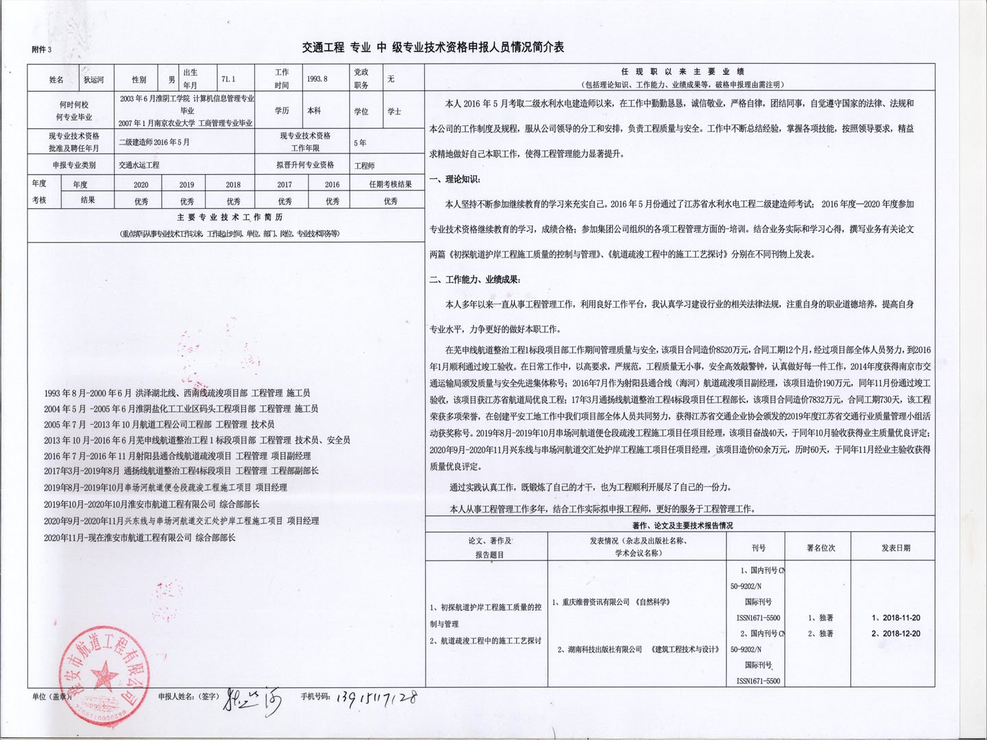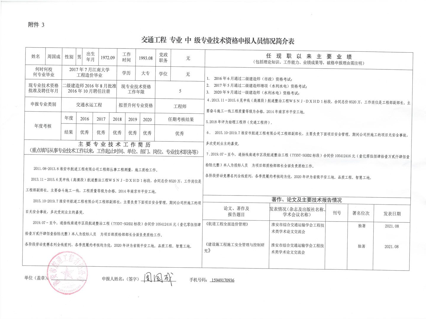 關(guān)于周國成等同志申報交通工程類水運工程專業(yè)中級工程師的公示